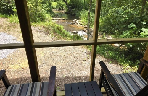 o Screened front porch (bug free) with rocking chairs, on the creek