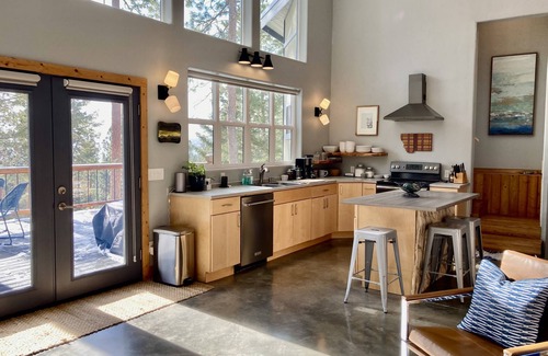 Nature House is not only a beautiful refuge outside, but inside as well. Designed as a place of respite and rejuvenation for folks looking for a relaxing getaway, Nature House is all about simple comfort. Giant windows make it feel as if you're living in the trees. Take in lake and mountain views while unwinding in the concrete soaking tub for two (bubbles provided!). Let the shower's rain and jet features work their magic on sore, tired muscles. Relax and reconnect. How about an in-home massage? Nature House has partnered with Anna Faith, Licensed Massage Therapist, who will come right out to the house. Ahhhhmazing!