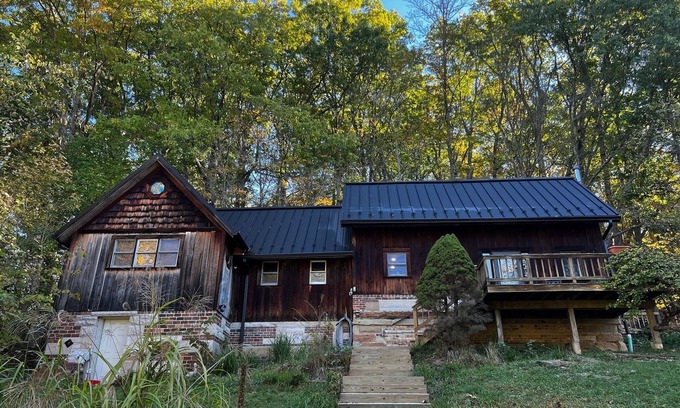 Escape to Art Park Cabin, a fully renovated three-bedroom, two-bathroom retreat nestled on 24 private acres of scenic woodland. Perfect for families visiting Ohio University (10 minutes away), or nature lovers seeking seclusion, this modern yet cozy getaway offers the ideal balance of comfort and nature. Inside, you'll find a modern kitchen, spa-like bathrooms, and cozy bedrooms, plus a charming reading loft for peaceful relaxation. The master suite features a king bed with an en-suite bathroom, while two additional queen bedrooms share a central bath. Step outside to explore private hiking trails, unwind by the Adirondack fire pit with a SoloStove, or enjoy a meal on the patio with a propane grill and outdoor seating. Watch deer and rare birds from the back deck, or sip coffee while enjoying the view from the front porch rocking chairs, and end your day with a bonfire under the starry skies. With high-speed WiFi, easy access to the local farmer’s market, and the tranquility of a secluded retreat, Art Park Cabin is the perfect getaway for nature lovers, college visitors, and anyone looking to relax in style.