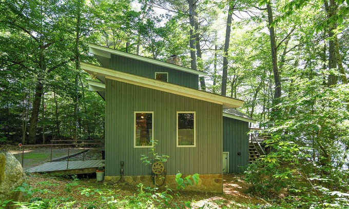 NEW FOR 2025! This cozy cottage is tucked into the woods on beautiful Thompson Lake, offering a peaceful spot to unwind and enjoy nature. Inside, you’ll find warm knotty pine throughout, giving it a classic camp feel, with modern updates for a comfortable stay. The spacious living room is bathed in natural light thanks to two walls of windows, offering peaceful views of the surrounding trees with the lake peeking through. It’s quiet, calm, and a great place to slow down—perfect for nature lovers, bird watchers, or anyone looking to unplug for a bit.