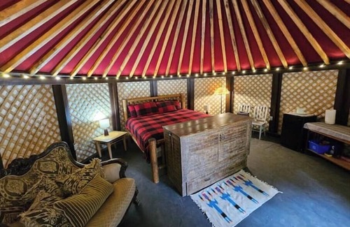 Get away from it all, glamping has never been so fun. Enjoy this cozy rustic style yurt on a 40 acre property nestled amoung the cedar trees. Hand fed bison on your doorstep, baby goats, ostriches, horses, chickens and Alpacas. Wonder around, enjoy the views, meet the animals and let your worries melt away.