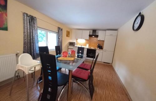 Offering a garden, Nature Retreat in Lorraine offers accommodations in Saint-Quirin. This property offers access to darts and free Wifi. The property provides barbecue facilities and outdoor furniture. Providing a terrace and garden views, the spacious vacation home includes 2 bedrooms, a living room, cable TV, an equipped kitchen, and 1 bathroom with a shower. The accommodation is non-smoking. There is an on-site bar. Guests at the vacation home will be able to enjoy activities in and around Saint-Quirin, like cycling, hiking, and walking tours. Skiing, golfing, and diving are possible within the area, and Nature Retreat in Lorraine offers water sports facilities. Strasbourg International Airport is 36 miles away.