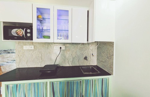 The kitchen is equipped with cutlery and crockery, refrigerator, induction to handle basic cooking.