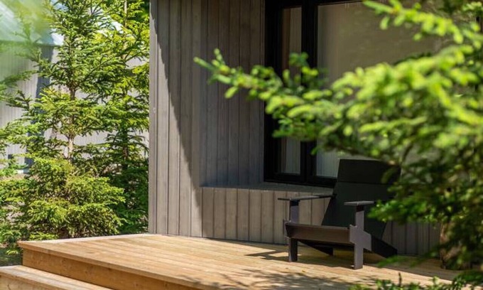 Each cabin suite is approximately 450 square feet and equipped with one organic queen bed, a walk-in shower, and a deep soaker tub. Interiors are modern and light-filled, featuring a private deck and window seat to quiet your mind and immerse you in nature. Cabins do not include a kitchenette - instead, enjoy chef-prepared meals serviced daily as part of your full-board retreat.