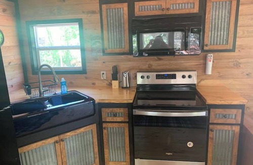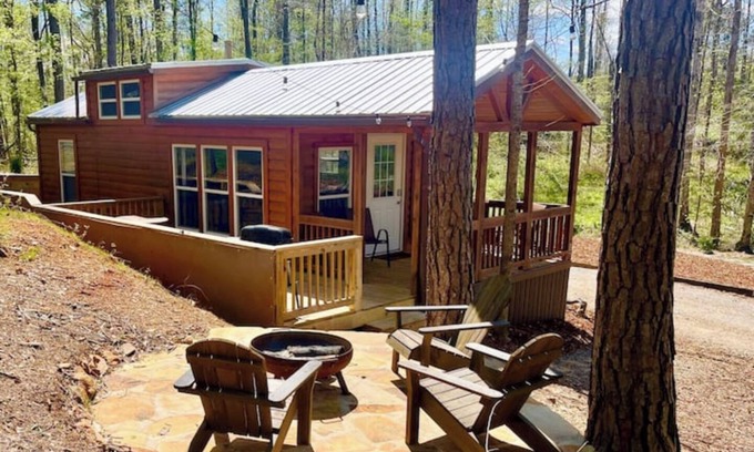 Relax on the covered porch & fire pit or fish on the banks of the creek or enjoy a day of adventure on a kayak or boat which can be kept at the shared dock. (Shared with other tiny cabin)