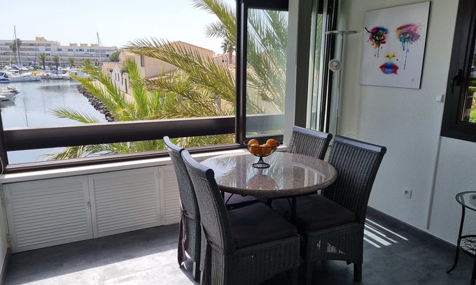 Located in the Naturist Village of Cap d'Agde, in the heart of the Village, within the Port Vénus Residence, close to the harbor and shops.