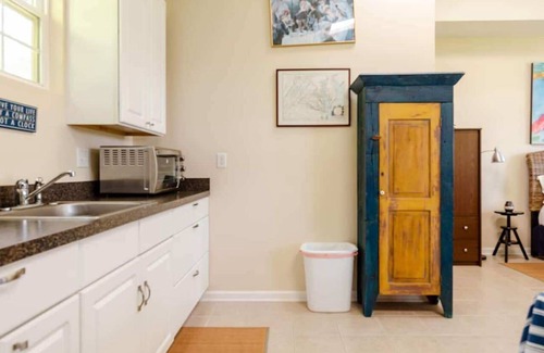 Our comfortable and relaxing studio is a quiet retreat with a fantastic view while still only a 30 minute drive to Annapolis, and an hour drive to Washington DC or Baltimore. Situated in a charming waterfront and sailing community, this separate and private unit has: parking, 1 bath, queen bed, kitchen(limited), high speed Wi-Fi and Bluetooth speaker. Wake up to the cluck cluck of our four resident chickens who are tucked away in their attractive coop.