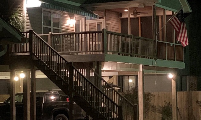 3 BR 2Bath, pet friendly home.. Enjoy all the luxuries of home while enjoying an awesome retreat. Screened in porch and deck with grill to enjoy time outside. Fenced in yard. There is a private beach area and pier, however this belongs to a private beach club and is not available for public use. PUBLIC LAKE and BEACH ACCESS is at GOLDSTON’s PIER.