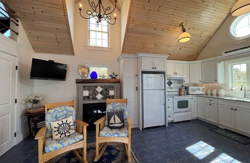 Walk into a little piece of heaven when at the Nautical Nest! The quintessential charm and decorating of this cottage makes it even more appealing than it already is. A newly updated and clean kitchen awaits you with modern appliances and gorgeous blue quartz countertops. With cathedral ceilings throughout the home Nautical Nest also offers a flat-screen TV and gas fireplace for those nights when the ocean air gets a little chilly. The dining area sits in the perfect spot with windows to take in the sunsets over Mount Washington. A full-size bed is located on the main floor off of the dining/living area. The bedroom has its own private entrance to the full bathroom with a standup shower. Feeling like you want to share your little piece of heaven? There is a futon in the loft area for any extra guests. Enjoy the great amenities this cottage has to offer such as a laundry on-site, a dock, pebbly beach, hammock, and many more.
