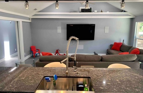 There is a 75” flat screen TV in the living room and a 65” flat screen TV in the master bedroom. Free High-speed WiFi is available.