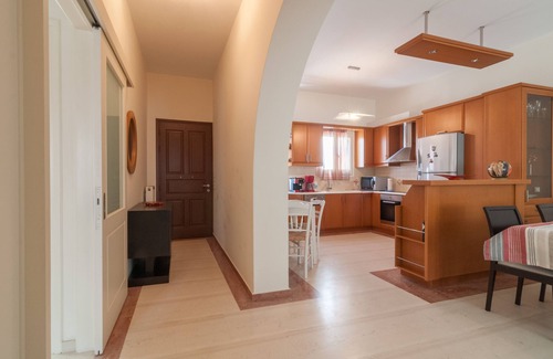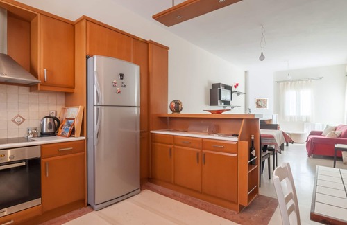 The apartment was initially built for personal use. It is located in the center of Naxos town in a quiet neighborhood and only 5 minutes walking distance from the beach of St. George. Nearby, within walking distance, you will find restaurants, supermarket, bakery, pharmacy etc.
