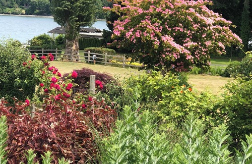 There is an expansive waterfront lawn with fruit trees, flowers, swing and slide for children at the backyard. Events may be available upon request. Pit fires may be available . Quiet time is between 10pm and 8am.