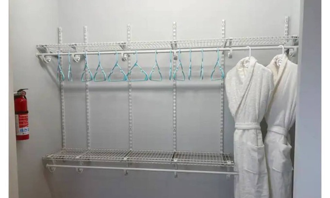 There are two guest rooms and a bathroom that offer a private guest suite.