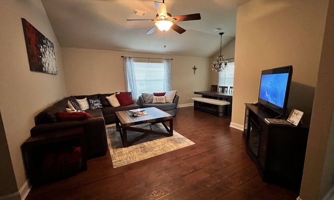 This cozy home is pet friendly, family friendly, 15 minutes from George Bush Intercontinental airport, less than a mile from Wal-Mart, in a cute HOA protected community. The kitchen is equipped and ready, no need to eat out every night. Two full beds and twin bunk beds, open and spacious living area. Keurig, washer and dryer, large backyard, grill and space to relax out doors. If you can't be in your own home, this is the next best thing. No parties or events allowed.