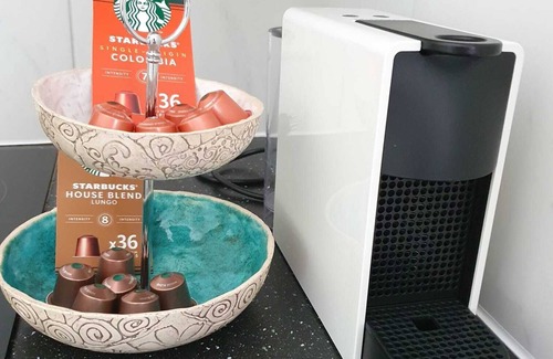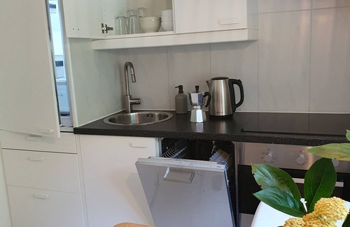Kitchen: Fully equipped (oven, microwave, dishwasher, stove, fridge, kettle, dishes, dining table with chairs, espresso maker, Nespresso machine)