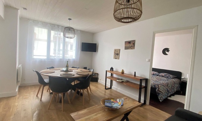 Near center, nice T3, 2 bedrooms, 4 beds is located in Downtown. Near center, nice T3, 2 bedrooms, 4 beds provides accommodation, featuring Bedding/Linens, Fireplace/Heating, Entertainment, among other amenities. This Apartment features Bedding/Linens, Fireplace/Heating, Entertainment, to make your stay a comfortable one.