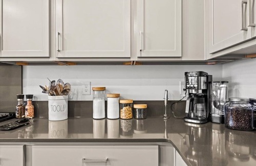 Complimentary WiFi, live TV and coffee. The kitchen comes fully loaded with stainless steel appliances such as a microwave, fridge, stove and dishwasher along with glasses, mugs, dishes and cutlery.