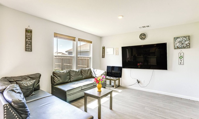 Craving time in the Texas pines? Find your perfect balance of adventure and tranquility at this Cleveland vacation rental! With its modern interior and ample outdoor space, this 4-bedroom, 2-bath home provides a convenient place for your crew to relax between activities. Spend days cruising around Lake Houston, shooting for the Red Wolf Golf Resort fairways, or splashing around at Big Rivers Waterpark. A fun-filled escape awaits!