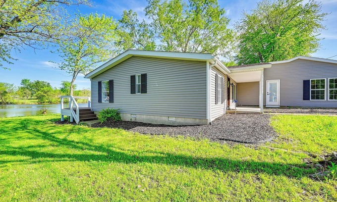 Your next rejuvenating lakeside retreat awaits at this 3-bedroom, 2-bath vacation rental in Dale, Indiana! Start your day at 'Twelve on the Lake' by sipping coffee on the deck and preparing a delicious breakfast in the full kitchen. Next, take your kayak out on the lake, hike the trails of Lincoln State Park, or visit a local peach orchard! Head home after a fun-filled day to relax in the hammock or cozy up by the fireplace.