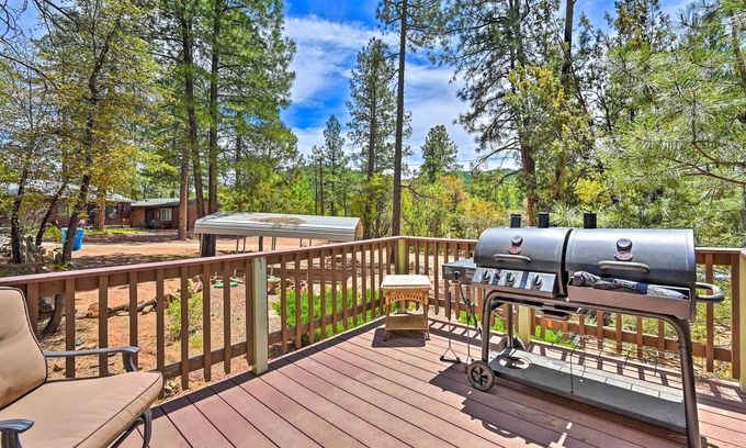 Escape the summer heat and enjoy the fresh mountain air and towering pines. This well-appointed cabin in Pine offers small groups a cozy 2-bed, 1.5-bath space and a spacious outdoor area with ample places to kick back and relax. Explore the beauty of Arizona and visit locations like the Tonto Natural Bridge State Park or hike any of the nearby trails. Pop into town and grab a fresh cup of coffee with breakfast at the Early Bird Cafe for a perfect way to start your days.