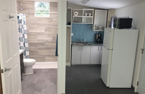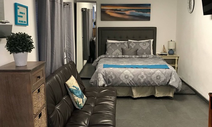The Studio is equipped with a fire stick for easy access to Netflix, local channels, a queen bed, full bathroom and kitchen.