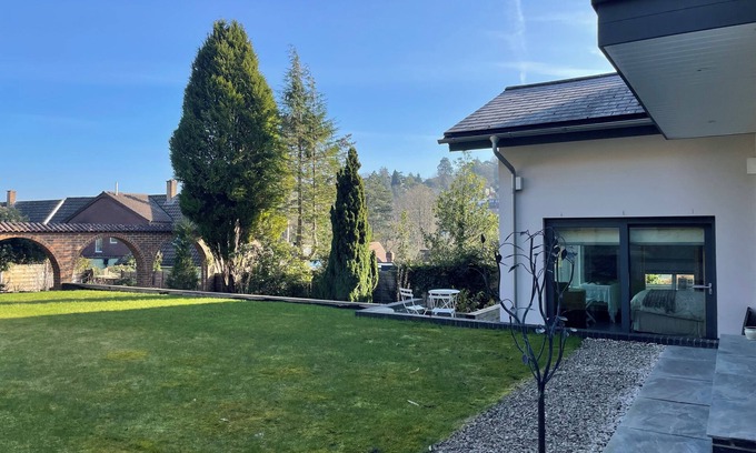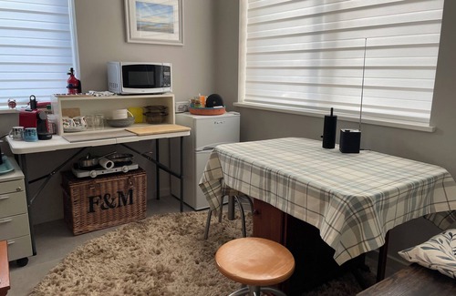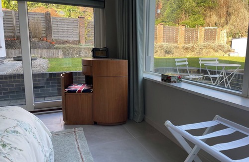 Private entrance around the back of a family home. With 1 spacious bedroom, shower room and lounge area with settee, mini kitchenette, ideal for simple meal assembly, with fridge freezer, coffee machine & microwave oven plus pull out single bed. Full access to the back garden and off street parking with EV charger (please bring your own cables and adapters).