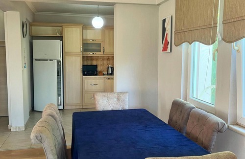 This marvelous villa in Köyceğiz which is only a 3 minute walk to the lake side is a delightful retreat for guests seeking a relaxing getaway. With 3 cozy bedrooms including 2 full beds and 2 single beds, this beautiful property offers all the comforts of a home. Enjoy the convenience of amenities like WiFi, a washing machine, and AC during your stay. The 2 bathrooms are equipped with a hairdryer and a shower for your convenience.A fully equipped kitchen to meet all your needs.We have a simple but enjoyable garden surrounded by greenery. You can sip your morning coffee outdoors and spend a cool afternoon with your family or friends. You can enjoy a barbecue in the barbecue area in the garden and make your dinners unforgettable outdoors with your loved ones. Fall in love with Köyceğiz and enjoy the magic it has to offer.