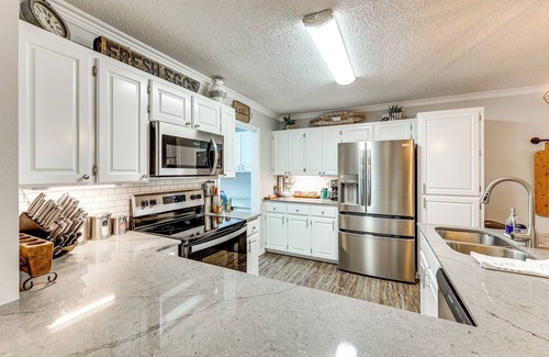Enjoy a peaceful Arkansas retreat with your loved ones at this 3-bed, 2-bath Russellville vacation rental! This home has a cozy living area with a Smart TV, a full kitchen, a spacious yard for your furry friends to explore, and proximity to town and outdoor leisure. Walk or bike along nearby trails, get out on the water at Lake Dardanelle State Park, or hit the links at Lions Den Golf Course!