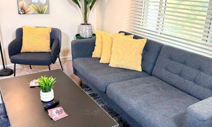 Unwind in the living room on the full size sofa while watching movies on the 55` smart TV. (must use your log in credentials) 1 accent chairs provide additional seating, and an air purifier ensures a fresh atmosphere.