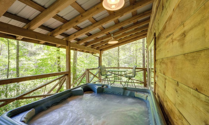 Near Lake Lure: Quiet Cabin w/Deck & Trail Access is located in Vein Mountain. Near Lake Lure: Quiet Cabin w/Deck & Trail Access provides accommodation, featuring Balcony/Terrace, Child Friendly, Internet, among other amenities. This Cabin features Balcony/Terrace, Child Friendly, Internet, to make your stay a comfortable one.