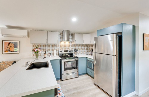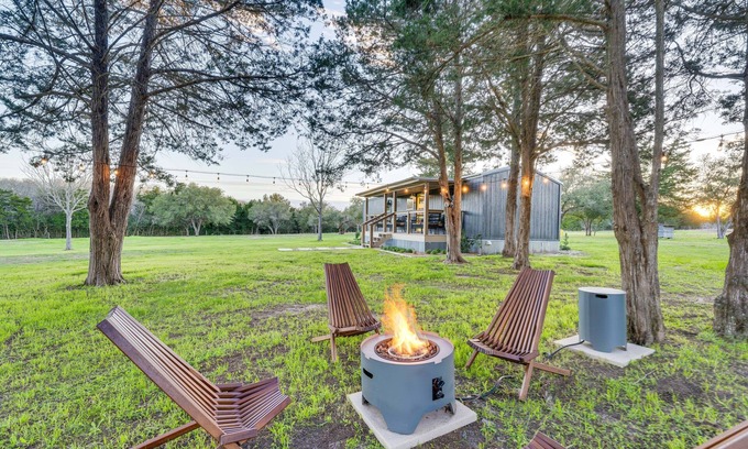Experience the blissful solitude of the Texas countryside when you stay at this 2-bedroom, 1-bath vacation rental just outside Schulenburg! This cozy cabin is adjacent to Majek Vineyard & Winery, making it the perfect spot for couples looking to relax and indulge in local vintages! Don’t miss the famous Painted Church Tour, just 10 miles away. When you're not exploring historic hotspots or trying wines, lounge on the vintage mid-century furniture and end your stay around the fire pit!