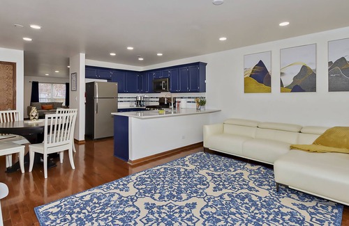 Cook up breakfast, lunch and dinner in the fully equipped chefs kitchen with sleek quartz countertops, high-end stainless steel appliances and all the pots, pans and utensils you could need. Then eat together in the open dining area with a stylish expandable table set for up to six that also doubles as the perfect place to play games with a basket filled with cards, puzzles and board games!