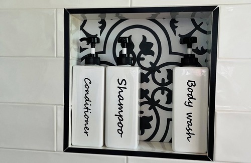 2 Bedrooms are divided by barn doors, other bedroom has full-sized bunks. All memory foam. Plenty of linens, hair dryer, curling iron, iron, toiletries. Dishes, coffee/tea provided. Cable TV, gaming devices, books, games and firewood.