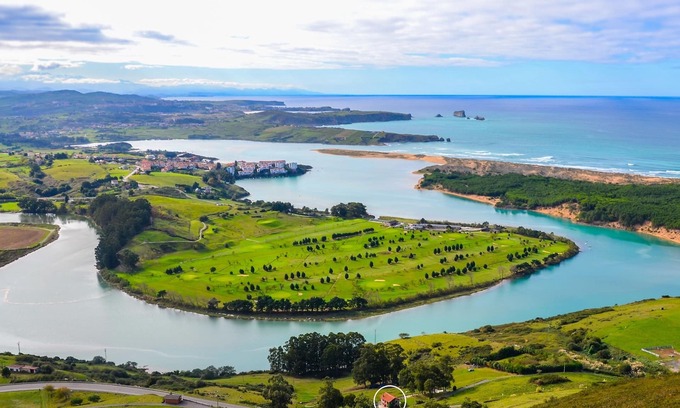 Located in the protected area, near the natural park Liencres, facing the Mogro golf course. View of the Picos de Europa, the ocean and the mouth of the river Pas.