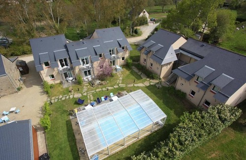 Located in the old relays Kergou, charming apartment completely renovated 65 m² with balcony, 2 bedrooms, 2 bathrooms and 2 toilets for 2 to 5 people. You will have access to the indoor heated swimming pool from May to September.
