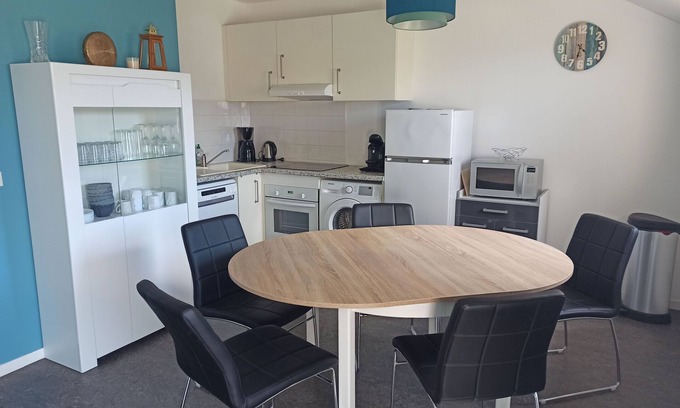 The human size of the residence (12 apartments), the quiet location in the countryside, 10 minutes from the beaches of Erdeven and the passage of the GR34, the large volume of the apartment, and 2 bathrooms in make a vacation spot that stands out from the many surrounding rentals.
