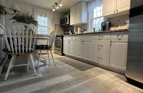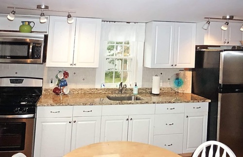 Nearby inflatable water-park , shops; 0.5 mile to the Music Room- live entertainment. Much to do nearby.. golf courses, miniature golf, Ryans bowling alley/axe throwing/corn hole/arcade and lounge, Pirate museum, walking trails, bike trails and kayaking . Our home has 2 Bedrooms, 1 bathroom, A/C units in each bedroom and living room. All linens, blankets, bath towels, beach towels included. Washer and dryer, phone charger, cable & high speed WiFi internet with 58” Smart TV. Fireplace in living room. Newly updated fully equipped kitchen including new modern appliances, dishes, cookware, glasses; cabinets, Keurig coffee maker which also makes iced coffee, granite counter tops and beautiful New flooring installed( Oct 2022) throughout the entire house . Renovated kitchen opens to adjoining bright, beautiful sun-room ,with futon, additional kitchen table, lots of chairs, wicker love seat and 2 wicker chairs which all overlook spacious backyard. Great for entertaining! Perfect for the kids to let loose. We have 4 bicycles for you to use... 2 adult bicycles and 2 younger adult bicycles and a bike rack for your vehicle, lawn games, corn hole, badminton, beach umbrella and lots of beach chairs in shed in the backyard . Relax on large, spacious patio with custom fire-pit along with outdoor grill and chill out in hammock in backyard. 4 parking spots in driveway. Finish it off in a spacious outdoor shower and you will have your perfect Cape Cod getaway. Our home has everything you will need for your Cape Cod vacation .