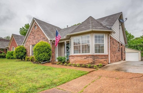 The Sunset Trace Bungalow is your home away from home in Memphis! Our home can sleep up to 10 guests in this 3 bedroom, 2 bathroom home! Here, you can enjoy a spacious living room, full kitchen, and open patio in a fenced-in backyard! We're located about 10 mins from the Memphis Raceway, 15 mins to 1-40 and 20 mins to downtown and Shelby Farms Park! We would love to host you!