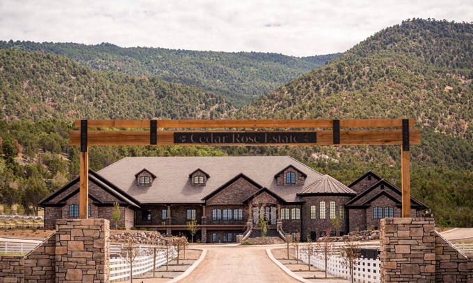 Welcome to the stunning Cedar Rose Estate, your ideal wedding accommodation located in Southern Utah, just 15 minutes from Brian Head. This luxurious retreat accommodates up to 100 guests, making it perfect for large gatherings such as family reunions and weddings. With its breathtaking mountain backdrop, expansive spaces, and modern amenities, Cedar Rose Estate is designed to create unforgettable moments that you and your loved ones will cherish forever.