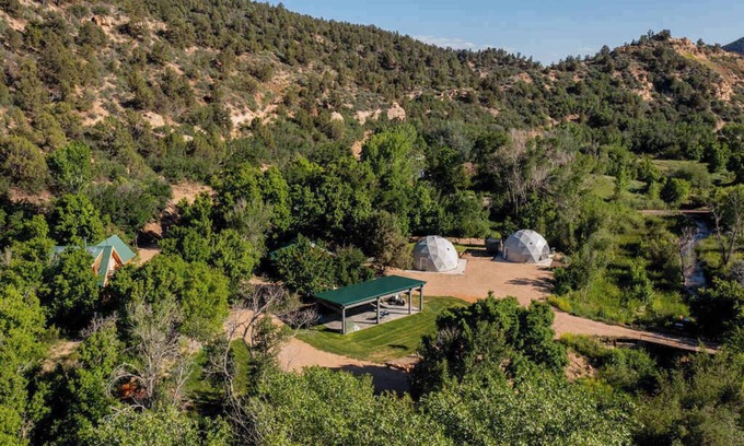 Welcome to Zen Zion, a stunning accommodation designed for large groups and the perfect venue for unforgettable weddings. Nestled just two miles north of Glendale, Utah, this fully renovated property boasts three cozy cabins and two unique dome houses, offering the ideal blend of privacy, comfort, and seclusion. With ample space to host your loved ones, Zen Zion provides a picturesque backdrop for your special day, making it an extraordinary choice for those looking to tie the knot under the stars.