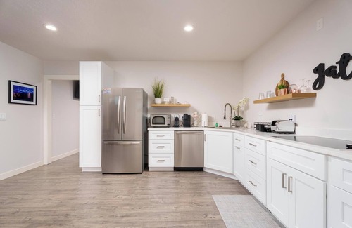 This spacious, family-friendly home features two fully equipped kitchens, perfect for large groups. Enjoy a private gym, game room, and a theater room for cozy movie nights. Board games, puzzles, books all available for your enjoyment. Coffee options for everyone; Nespresso pod machine, drip coffee and Querig coffee machine available. Kitchen also has crock pot, mixer, rice cooker, electric wine opener, electric kettle, slow cooker, baking sheets, blender, and food processor available.