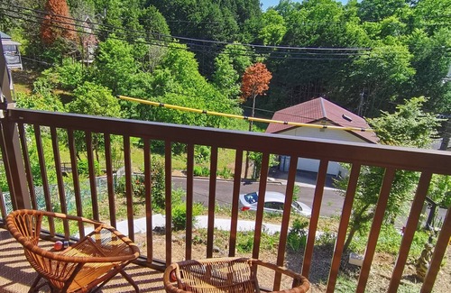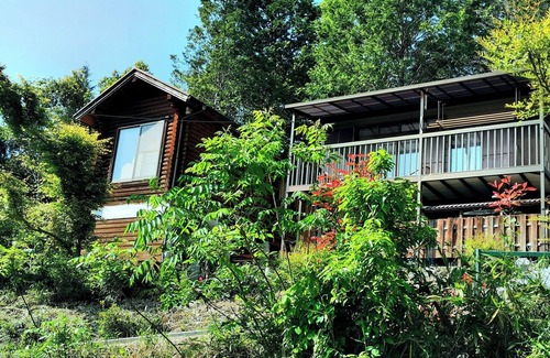 Only 5 minutes by car to Yunogo Onsen Ryokan area Two buildings stand in an extremely quiet forest away from the village The log house is cool in summer and warm in winter and the main house has a great view from the spacious balcony Starry sky at night Wake up in the morning with the chirping of birds