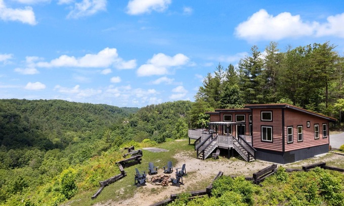 Your dream wedding awaits at Nearly 360 Degree Mountain View! This stunning cabin in Campton, Kentucky, offers a breathtaking panoramic view of the Appalachian mountains, providing an unforgettable backdrop for your special day. With its serene and private setting, this property is perfect for couples looking to create romantic memories amidst nature. Accommodating up to eight guests comfortably, it has everything you need to celebrate love with family and friends.