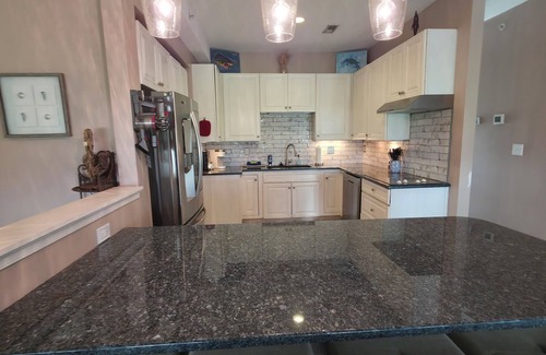 Your cozy getaway awaits in North Beach at this marvelous house. Perfect for groups of friends or family, this home offers a chic coastal vibe with space to match. Gather around the huge sectional for movie night, cook together in the modern kitchen, or relax in spa-style bathrooms. Enjoy Bay views, comfy bedrooms, and the chance to stroll along the water with a short drive to shops and dining.