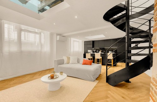 Cocoonr Agency offers you this charming 58 m² duplex flat in Toulouse for rent with wifi (fibre optics), which can accommodate up to 4 people. Located on the ground floor, it comprises a pretty living room with an open-plan kitchen. Upstairs, the spiral staircase leads to the bedrooms and shower room. Both bedrooms have skylights opening onto the living areas. The modern bathroom has low ceilings. It has a toilet, washbasin and storage space. Cleaning is included in the rental price and linen is provided (sheets, towels, tea towels). Your bed will be made up on arrival.