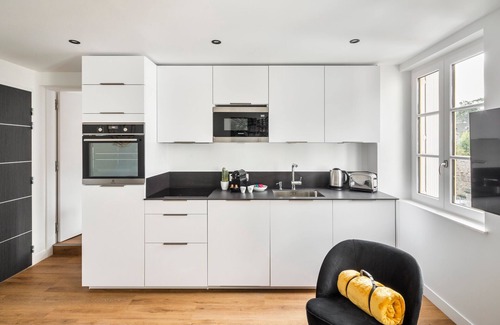- A modern, fully-equipped open-plan kitchen with toaster, oven, coffee machine, microwave, etc.