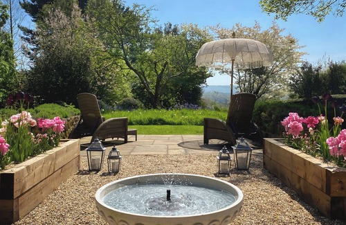 Nest Lodge feels completely independent and private within its own floodlit Mediterranean garden. Several seating areas and a firepit offer the perfect spaces from which to enjoy the Downland vista framed by mature, specimen trees and architectural planting.