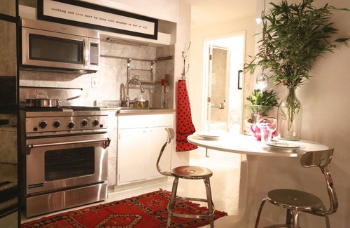 Tucked inside a beautiful, iconic Victorian, this in-law unit captures the essence of San Francisco living. With a queen -size bedroom and a queen-size daybed open to the living area, it’s both stylish and functional. The interior features crisp white modern design, Moroccan rugs, a large kitchen , and a bathroom with a tub. Comfortable beds and eco-friendly EO products ensure a relaxing stay.