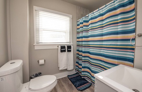 The bathroom is clean and well-maintained, with a shower/tub combination and all the necessary amenities for your stay.