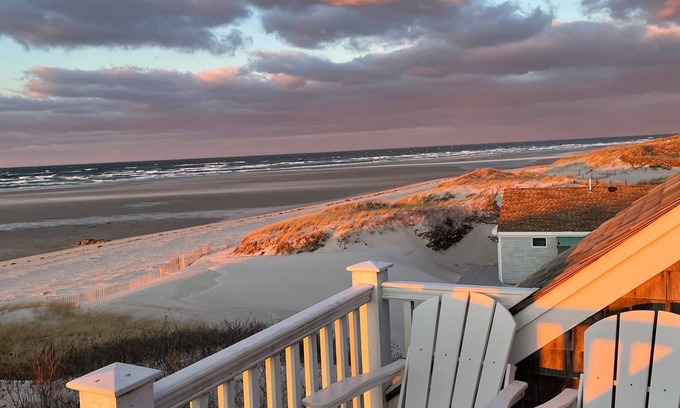 This is a one of a kind beach front property on Cape Cod Bay. Nestled in the dunes with unobstructed views and unparalleled sunsets. Private beach. Short walk to Gina's and Chapin's restaurants. Open floor plan. Multiple viewing decks. The house has an upside down floor plan with lower level area tv/game room with additional Murphy bed and pull out sofa. There are 2 Bedrooms on the upper level which is at the beach level. The interior has a coastal feeling decor. There is Screened in porch. Gas fireplace. Short walk to Mayflower and Bay view beaches. Park the car and never have to leave! This is the ideal Cape Cod Beach house!